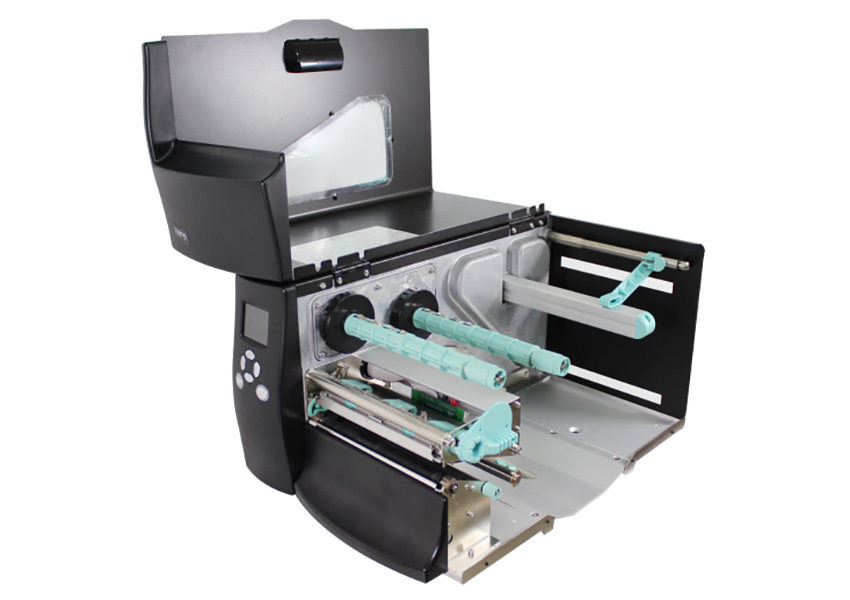 - Admite una capacidad de cinta de 450 metros y una etiqueta de 8 pulgadas de diámetro (núcleo de 3″) para volúmenes de impresión altos.