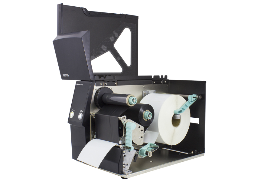 - Admite rollos de 450 metros de cinta y etiquetas de 8 pulgadas de diámetro (núcleo de 3 «) disponible para grandes volúmenes de impresión.